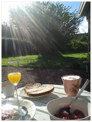 Vilken ljuvlig tid det är... De där sista, skälvande, riktigt varma, soliga, sensommardagarna som liksom känns som några extra bonusdagar av sommaren som vi får oss till skänks innan hösten med dess kyla drar in! Det bästa vi vet är att sitta ute och äta frukost någonstans i trädgården. För varma dagar blir det under några av de gamla träden som alltid ger lagom svalka och om vinden är för kall blir det på vår inglasade veranda. Så vi passar på! Både jag och Joakim...